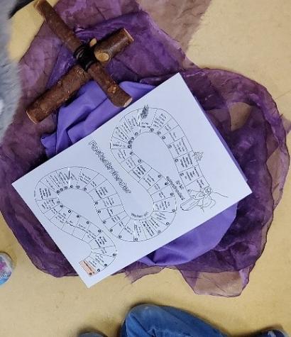 Kindgerecht erklärten wir im Anschluss die Fastenzeit. Ein Fastenkalender in Form einer Raupe und Geschichten von Jesus begleiten uns nun in den Kiga-Gruppen durch diese spannende Zeit, in der wir uns auf das Osterfest vorbereiten.